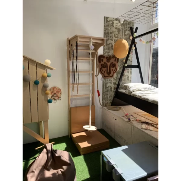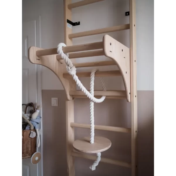 Drabinka gimnastyczna BenchK 112+A204 to wielofunkcyjne urządzenie z akcesoriami gimnastycznymi oraz nakładką-biurkiem, które świetnie sprawdzi się nawet w niewielkim pokoju dziecięcym. Maksymalna waga osoby ćwiczącej wynosi 120kg, dzięki czemu mogą z niej korzystać nie tylko dzieci, ale również dorośli. Regulowana wysokość drążka pozwala na dostosowanie wysokości biurka do wzrostu użytkownika. Drabinka BenchK 112+A204 wykonana jest z litego drewna bukowego, ręcznie olejowana, co zapewnia nie tylko estetykę, ale również trwałość. Nakładka-biurko może być łatwo zdjęta i przechowywana na górze drabinki, co pozwala zaoszczędzić miejsce. Zawiera zestaw do montażu, jednak decyzja i odpowiedzialność za sposób montażu leży po stronie klienta. Montaż do ściany nie jest możliwy do ściany gips-karton. Obligatoryjna grubość ściany w przypadku montażu przy użyciu kołków rozporowych Fischer dostępnych w ofercie BenchK wynosi 12 cm. W pozostałych przypadkach jest to tylko rekomendacja. Istnieje możliwość polecenia firmy montażowej na terenie całej Polski.