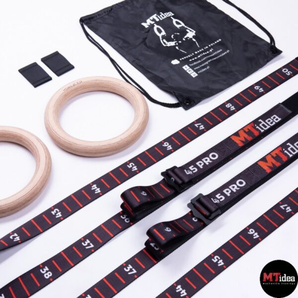 Te polskie kółka gimnastyczne są ręcznie robione z obręczami o zwiększonej grubości do 34 mm. Są szczególnie przydatne do codziennego, ciężkiego treningu z obciążeniem. Ich szerokie obręcze minimalizują ryzyko obtarć i bolesnych ucisków podczas ciężkich serii ćwiczeń, takich jak ugięcia (dipy), wspieranie ciągiem (muscle upy) i pompki. Szerokie, skalowane taśmy pozwalają na bardzo szybkie poziomowanie kółek względem siebie. Klamry alpinistyczne są bardzo bezpieczne i samozaciskowe pod wpływem obciążenia. Jest to sprawdzony i ceniony zestaw do codziennego ciężkiego treningu, który jest wykorzystywany w wojsku, CrossFit boxach, klubach fitness i w domowych siłowniach.