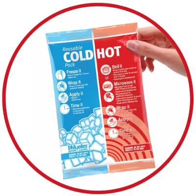 Okład żelowy Mueller może służyć do chłodzenia lub rozgrzewania dotkniętych bólem obszarów.