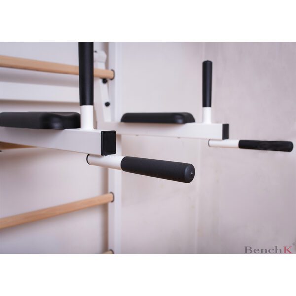 Poręcze można łatwo zdjąć, co umożliwia zmianę ich wysokości. Gdy poręcze zostaną odwrócone i ponownie zawieszone na drabince, mogą służyć jako uchwyt na sztangę o maksymalnej wadze 200 kg. Poręcze do ćwiczeń BenchK DB0W mają wytrzymałe i łatwe w pielęgnacji podłokietniki z integralnej pianki poliuretanowej oraz cztery antypoślizgowe rączki. Zostały one zaprojektowane specjalnie dla serii BenchK 5 i są kompatybilne ze wszystkimi drabinkami BenchK.