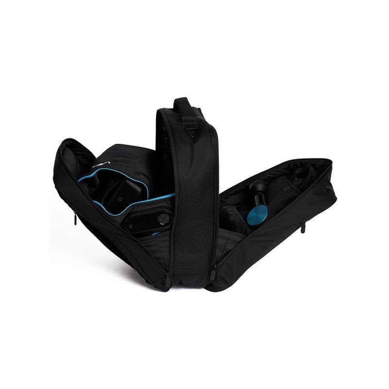 Plecak wyposażono w wyściełane przegrody, które pomieszczą nie tylko urządzenia mobilne, takie jak laptop czy podręczne dokumenty, ale także dedykowane kieszenie na mankiety RecoveryAir lub JetBoots, urządzenie sterujące Primie/Pro oraz na Twój Theragun lub Wave Roller. Dodatkowo, posiada wyściełaną kieszeń na laptop i może być wykorzystany jako torba.