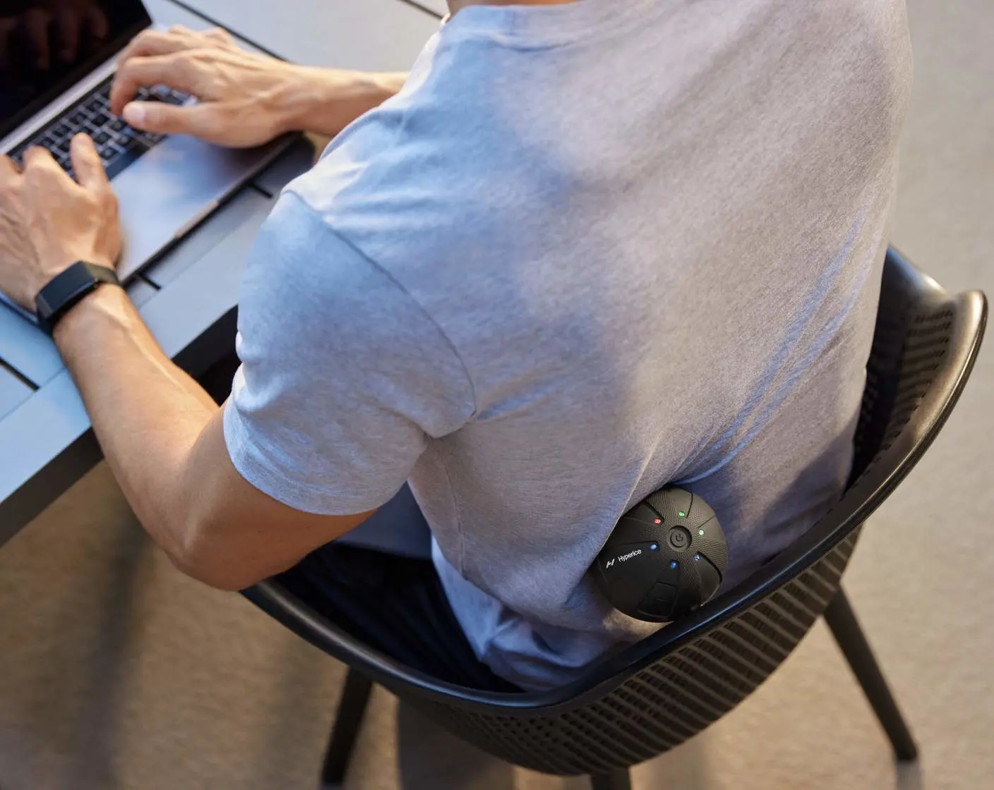 Hypersphere Go to piłka do masażu, która mieści się w dłoni. Z trzema prędkościami wibracji – niską, średnią i wysoką – możesz przesuwać ją po swoich mięśniach, tam gdzie potrzebują rozluźnienia.