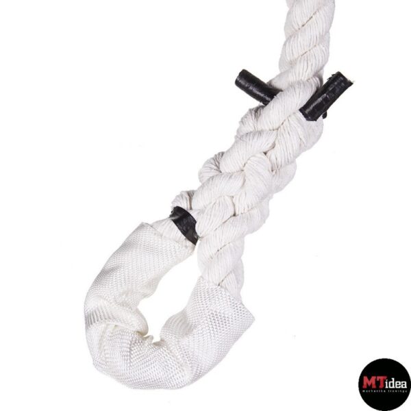 Lina jest zakończona profesjonalnie zaplecionym oczkiem, co zapewnia bezpieczeństwo użytkownikowi. Drugi koniec liny jest zapleciony i zabezpieczony przed rozplataniem, co również wpływa na bezpieczeństwo i wygodę podczas treningu.
